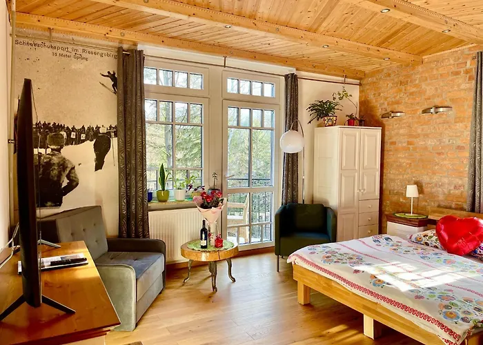 Situato proprio accanto a foreste e cascate, Apartamenty Pod Skocznia, un appartamento unico, vanta una sauna. I principali luoghi d'interesse di Karpacz, tra cui la Karkonoskie Tajemnice e il Private Museum of Technology and Structures with Lego Blocks, sono molto vicini.